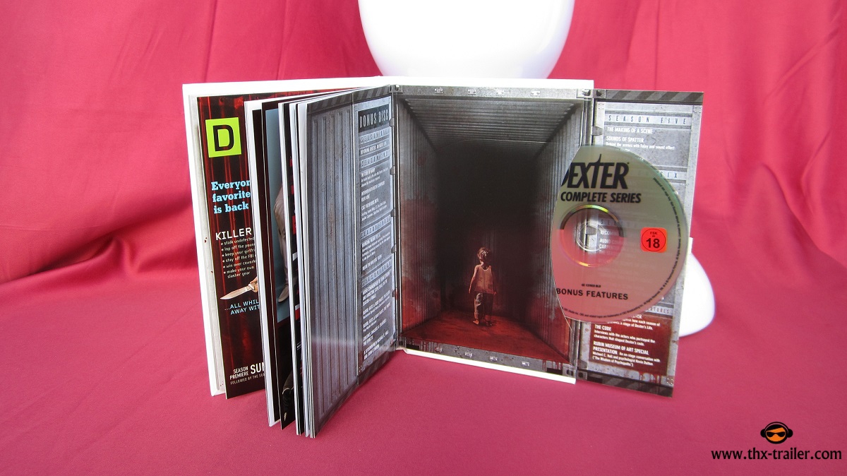Weitere Highlights der Komplett-Edition: ein Artbook mit Fotos, Fan-Material, Designelementen und Motiven der Dexter-Kampagnen. Und auch die Bonus-Disc wird den Sehnsüchten jedes dunklen Begleiters