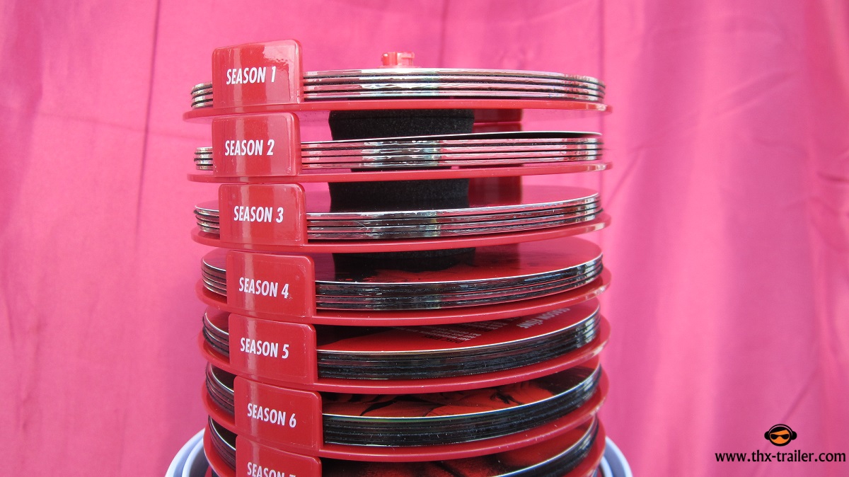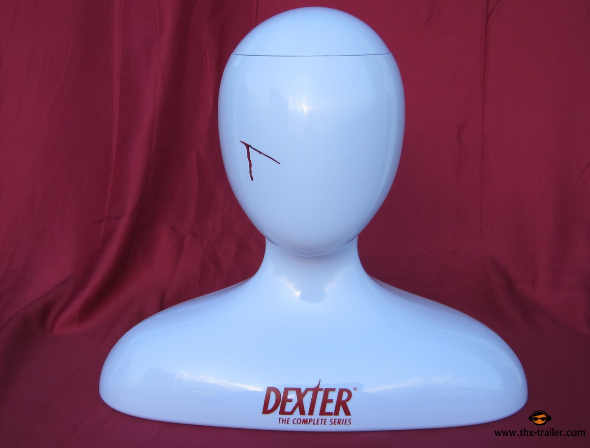 Alle acht Staffeln als limitierte Edition in einer Kunststoffbüste, die Dexter Morgans beliebtem Arbeitsutensil nachempfunden ist.
