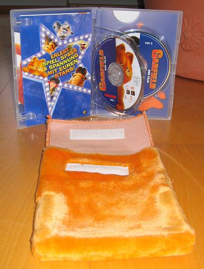 Die 2-Disc Special Fell-Edition ist in einer Amaray Hülle, die in einer Tasche aus orangem Fell verpackt ist. Das Ganze steckt noch in einem Karton, auf welchem Infos zu der DVD vermerkt sind, und vorne Garfield abgebildet ist.