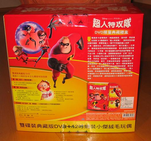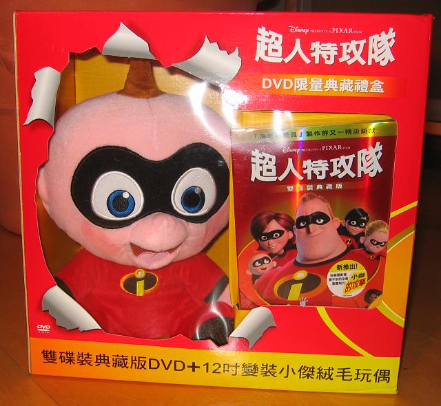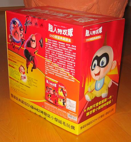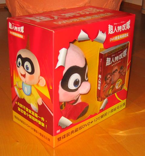 In Taiwan ist eine schicke "Gift Box" zu Pixars "Die Unglaublichen" erschienen, welche in einem stabilen Karton die Film-DVD und eine Jack Jack Puppe enthält. Beides ist durch ein Sichtfenster zu sehen. Die qualitativ hochwertige DVD mit vielen interessanten Extras rundet das Paket hervorragend ab. Die weltweit beste Edition für Sammler!