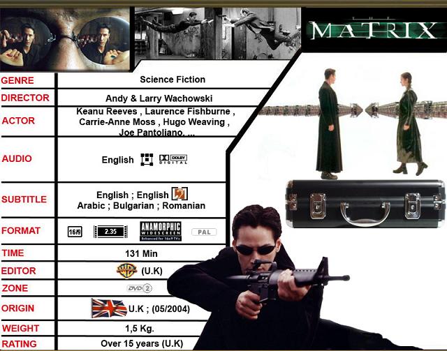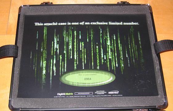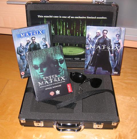 In Großbritannien ist eine sehr edle Edition von "Matrix 1" in Form eines Aktenkoffers erschienen. Neben der normalen Film-DVD im Snapper gibt es noch das PC-Spiel "Enter the Matrix", eine "Neo-Sonnenbrille", ein Poster und ein Booklet. Sehr edle, aber auch sehr seltene Edition des Films.