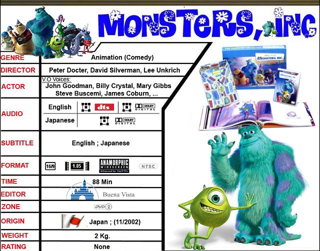 In Japan ist die "Monster AG" (Monsters, Inc.) als limitierte Sammlerbox erschienen, welches neben der technisch hervorragenden DVD noch ein Buch und ein Hemd beinhaltet.