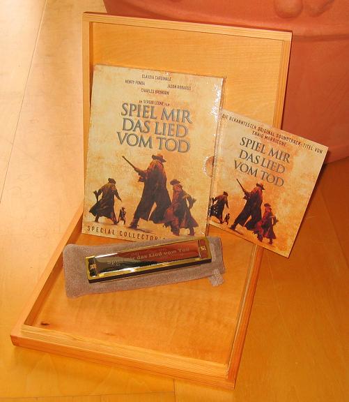 Diese edle Holzbox beinhaltet neben dem schicken Digipack eine Soundtrack DVD mit einer Mundharmonika im Lederbeutel.