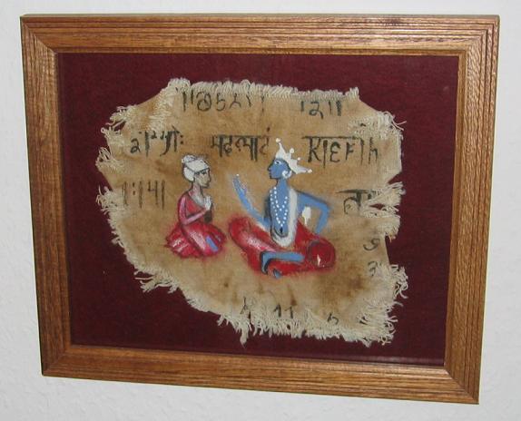Original benutzte Stofffetzen mit Sanskrit-Inschrift!