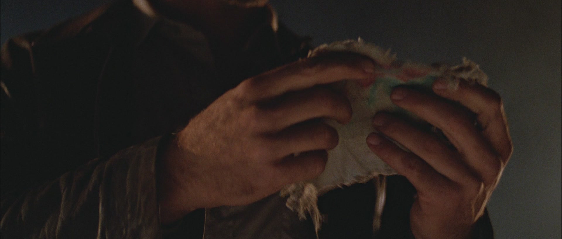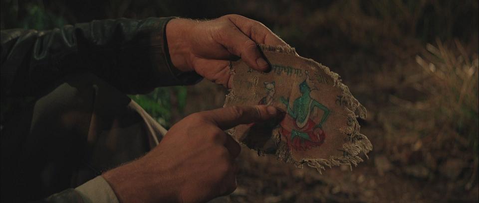 nahes Kind in die Arme. Es gibt ihm einen Stofffetzen, den Indy später untersucht.