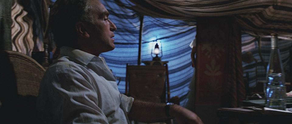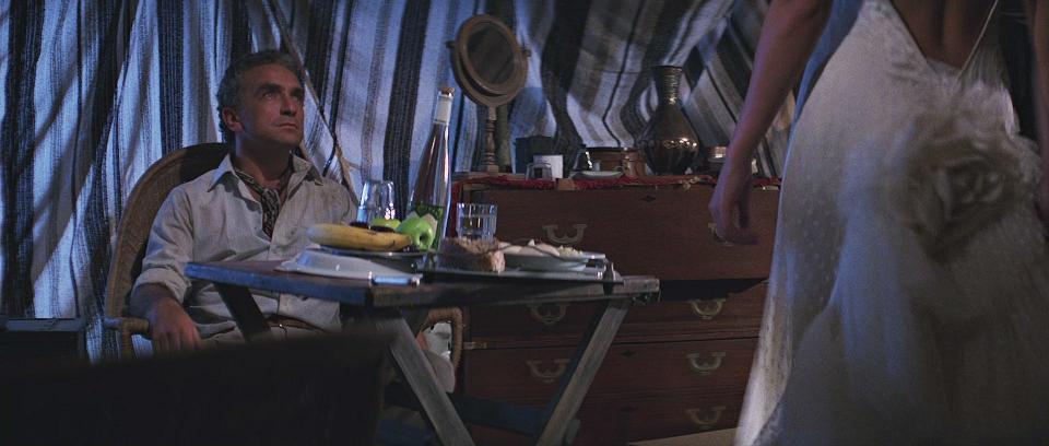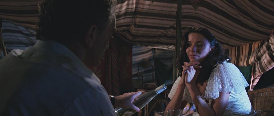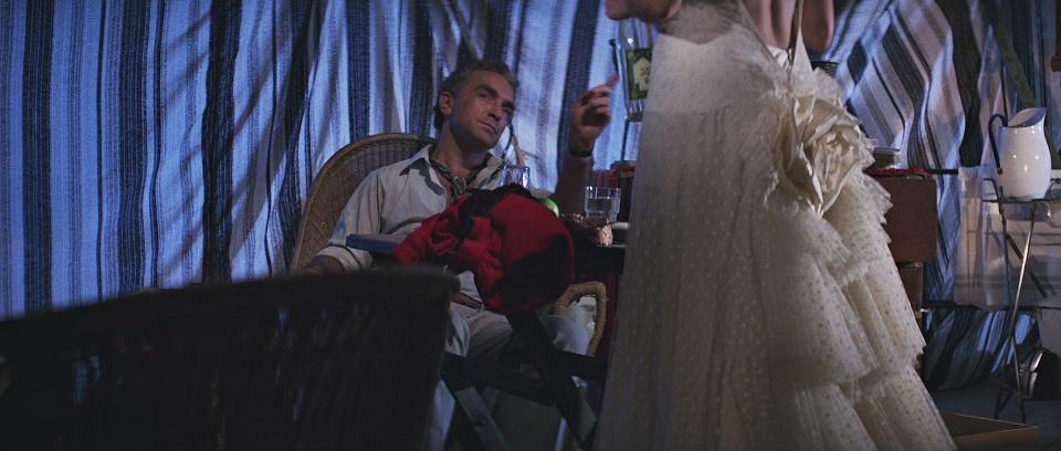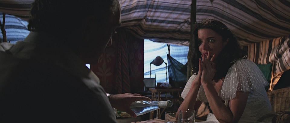 von Tanis gebracht wird, flirtet sie mit Rene Belloq. Sie ist bereit, das Kleid zu tragen, das er für sie besorgt hat,