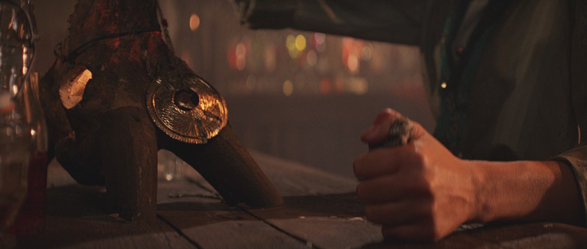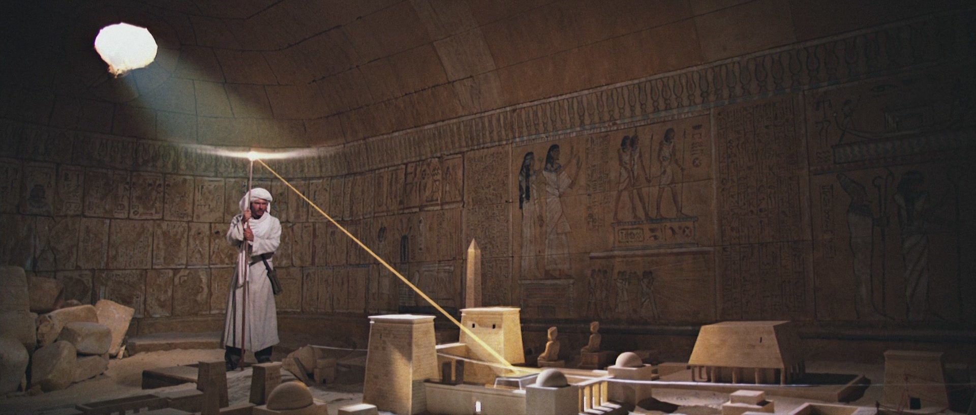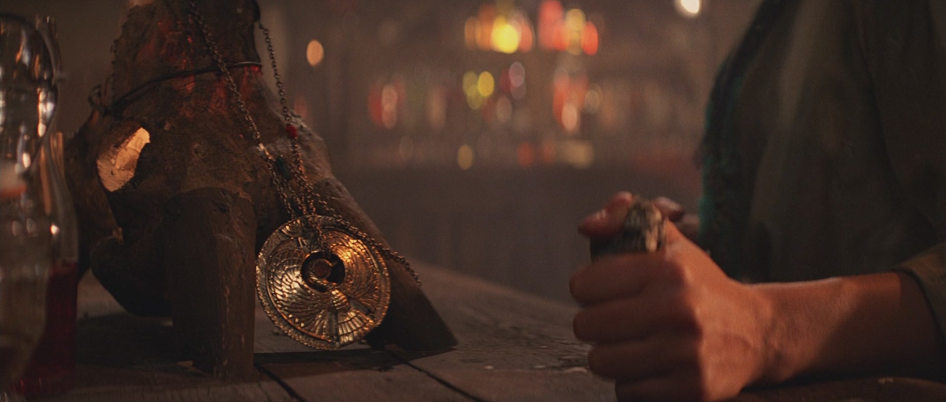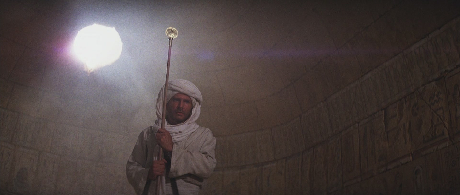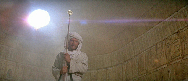Eines der wichtigsten Requisiten in Jäger ist das Kopfstück vom Stab des Ra, denn dieses Kleinod, so wird erzählt, weist den Weg zur lange verschollenen Bundeslade. Im alten Ägypten war Ra der Sonnengott, Sinnbild für den neuen Tag und Wiedergeburt. Mit real existierenden Antiquitäten hatte das Kopfstück nur wenig zu tun - hier erlaubte man sich bei der Gestaltung volle künstlerische Freiheit. Indiana fliegt nach Nepal, denn das Medallion soll sich dort in Besitz von Marion Ravenwood befinden, Indys früherer Liebe und Tochter einer seiner Professoren. Bilder by Indy Magnoli: