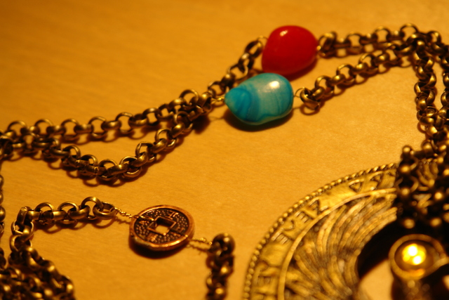 Chinesischer Replica Stein, farbiger Türkis Stein, und ein roter Stein