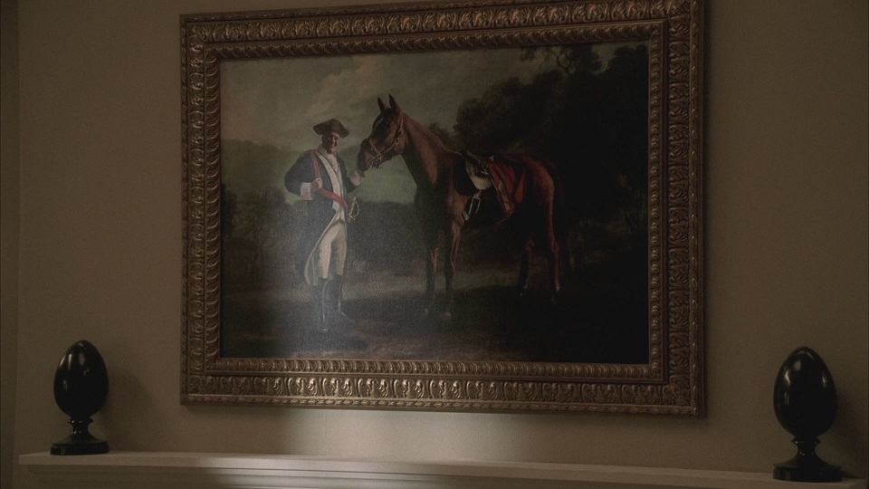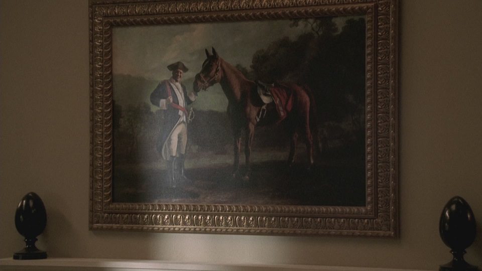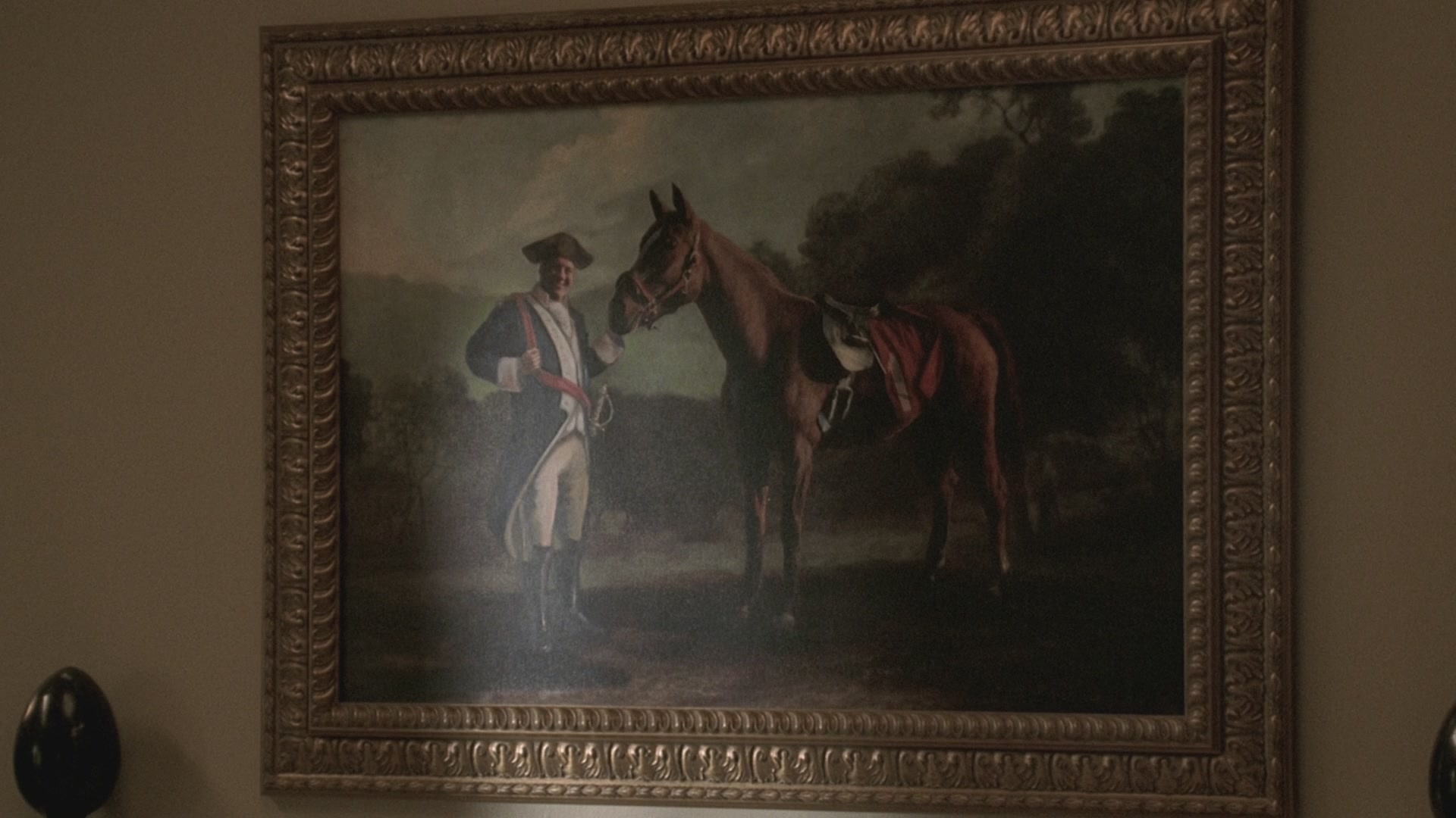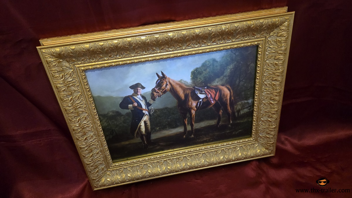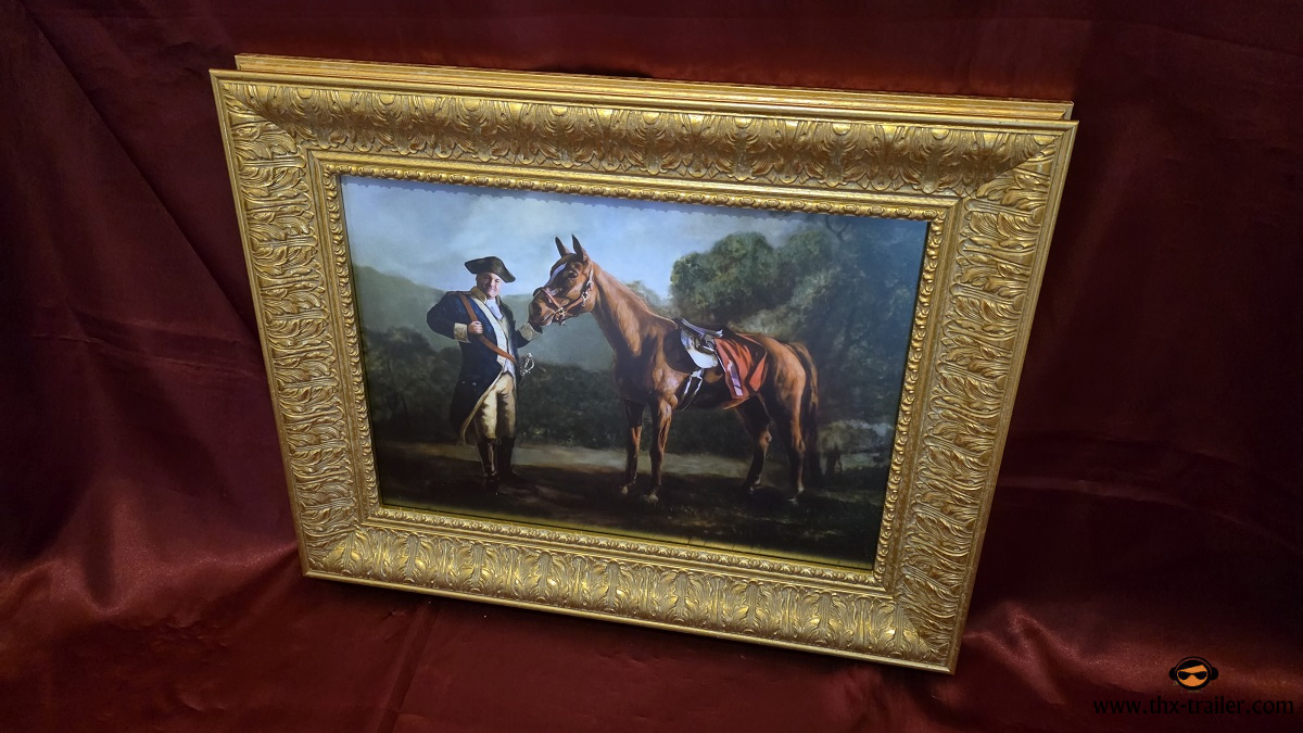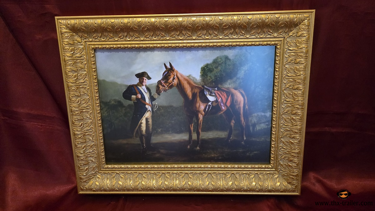 Das Bild habe ich von Etsy gekauft, dann ein Rahmen dazu gesucht der mir gefällt, es ist nicht 1:1, dafür hätte ich nicht den Platz! Der Rahmen hat eine Größe von einem DIA A3 Format, mit Rahmen hat es die Außmasse von 55cm x 43cm. Anthony hat das Gemälde extra malen lassen, um es aufzuhängen, durch den Tod des Pferdes, möchte er sich daran nicht mehr erinnern lassen und es soll zerstört werden. Kurz vor der Verbrennung wird es durch Pauli gerettet, er läßt es Anthony im Bild leicht verändern, in dem man irgendein General der Zeitgeschichte überpinselt, später in der Serie entdeckt das Bild Anthony Soprano bei Pauli zu Hause und ist nicht begeistert!