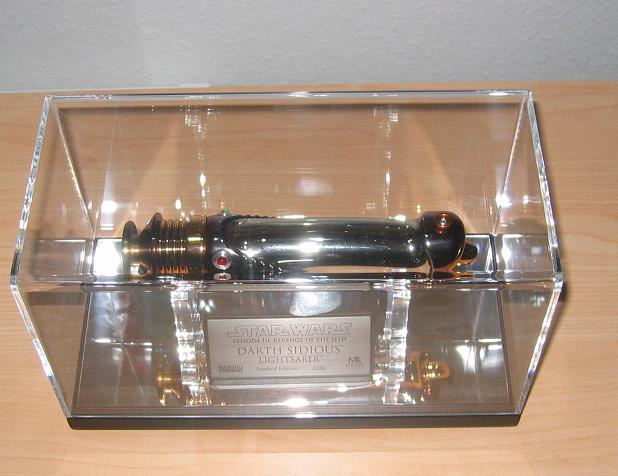 Offizielle Reproduktion von Darth Sidious' Lichtschwert aus Star Wars Episode III Die Rache der Sith. Inklusive einem Acryl Display Case, einer numerierten Metallplatte und einem Echtheitszeugnis.
