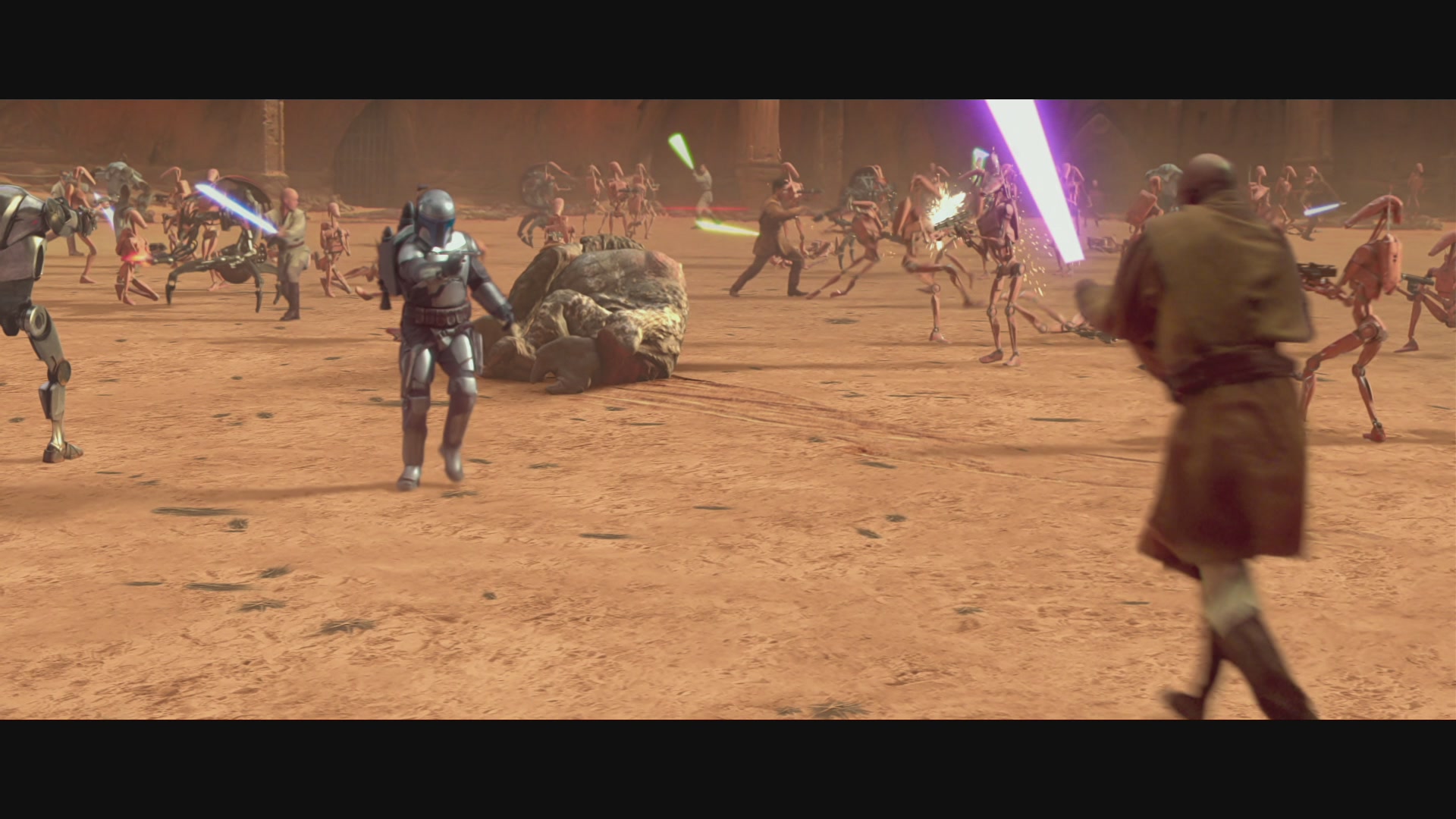 Count Dooku und die Separatisten entschieden, dass Meister Kenobi, sowie sein Schüler der bei einer vergeblichen Aktion seinen Meister zu retten ebenfalls gefangen wurde, hinzurichten wären, in einer Arena zur belustigung der Geonosianer. Noch während der Hinrichtung tauchte aus dem Nichts ein Jedi-Kommando bestehend aus 200 Rittern und Meistern auf um die Gefangenen zu befreien. Ein heftiger Kampf entbrandte und Jango griff mit ein, er tötete einen Jedi, der Count Dooku angreifen wollte und wollte anschliessend den Jedi-Meister Mace Windu töten, als er sah das Windu seine Waffe verloren hatte. Jango startete seinen Raketenrucksack und flog in die Arena, Windu schaffte es jedoch sein Lichtschwert zurück zu erlangen und lief auf Jango zu, Jango feuerte mit seiner Blasterpistole auf Windu, die dieser jedoch abwehren konnte. Mit einem gezielten Schlag enthauptete Windu Jango Fett, der auf der Stelle tot war. Sein Sohn Boba jedoch sollte einige Jahre später in seine Fußstapfen treten und wie sein Vater vor Ihm zu einem der gefährlichsten Kopfgeldjäger der Galaxis werden...
