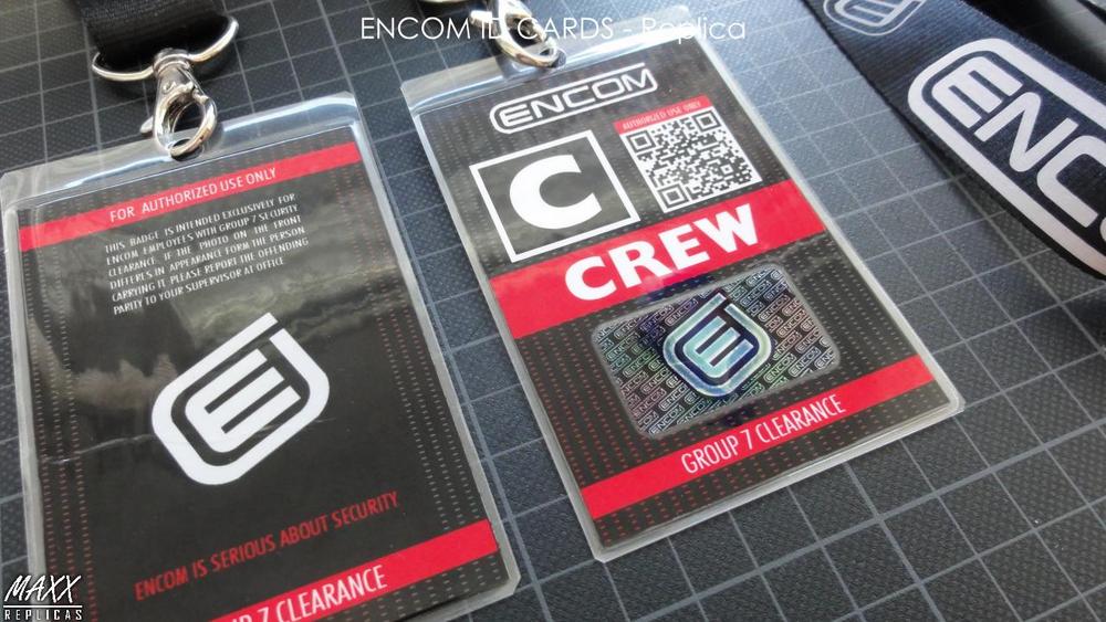 Zu sehen sind hier die Encom ID Karte. Diese sind Replicas der orginalen ID Cards die für die Crew verwendet wurden, dadurch hatte man vermutlich Einlass zum Filmset. Ähnliche ID Cards gab es auch als "Guest", die im Rahmen der Pressevorstellungen / Filmpremieren ausgegeben wurden.