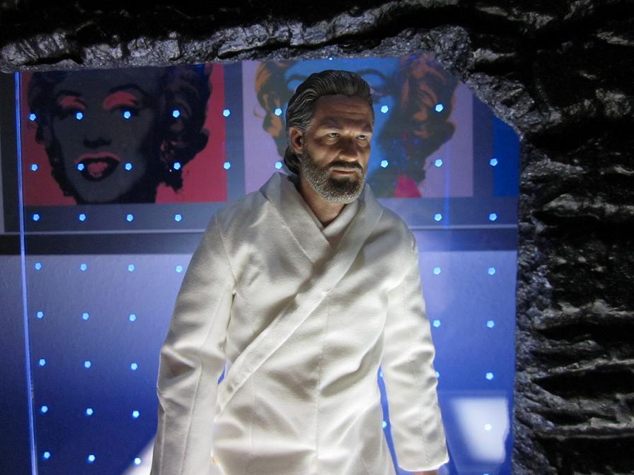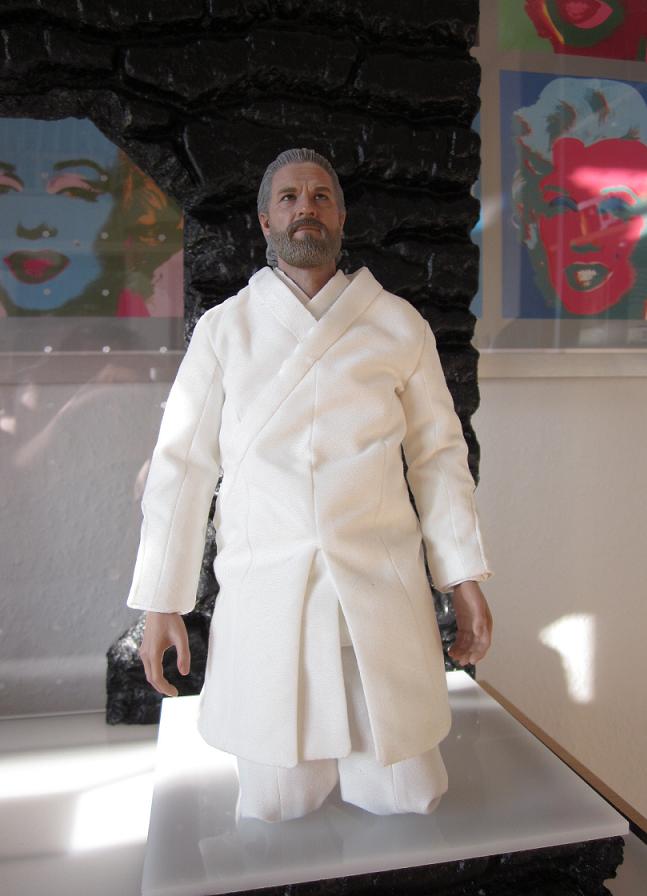 Features: - authentische Figur von Jeff Bridges als Kevin Flynn - TrueType Body mit 30 Bewegungspunkten - handbemaltes Gesicht - 5 alternative paar Hände - Longsleeve Robe - Longsleeve Shirt - alternatives ´Schwarzes Kostüm´ - Base mit LED-Lichtfunktion