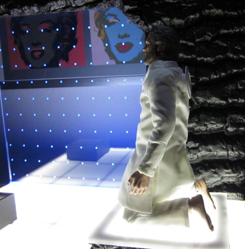 Zu sehen ist hier das Safehouse mit der Hot Toys Figur Kevin Flynn aus dem Film TRON Legacy auf dem beleuchteten Modellständer. Dieser hat die Abmessungen von 50cm x 50cm x 30cm. (BxHxT) Die Stromversorgung des Modellständers erfolgt über ein 12V Netzteil. Atemberaubendes Design mit raffinierten Lichteffekten!