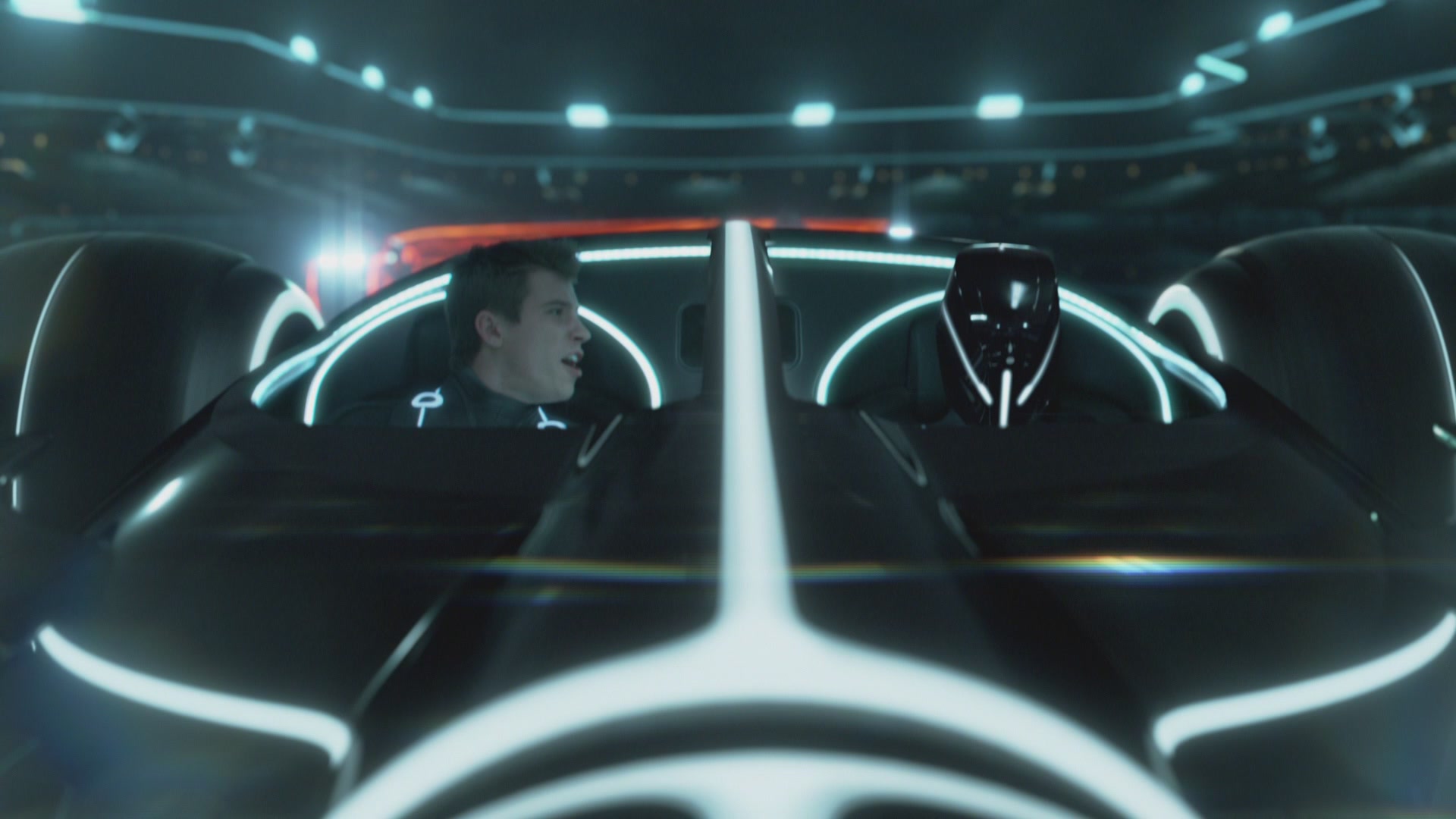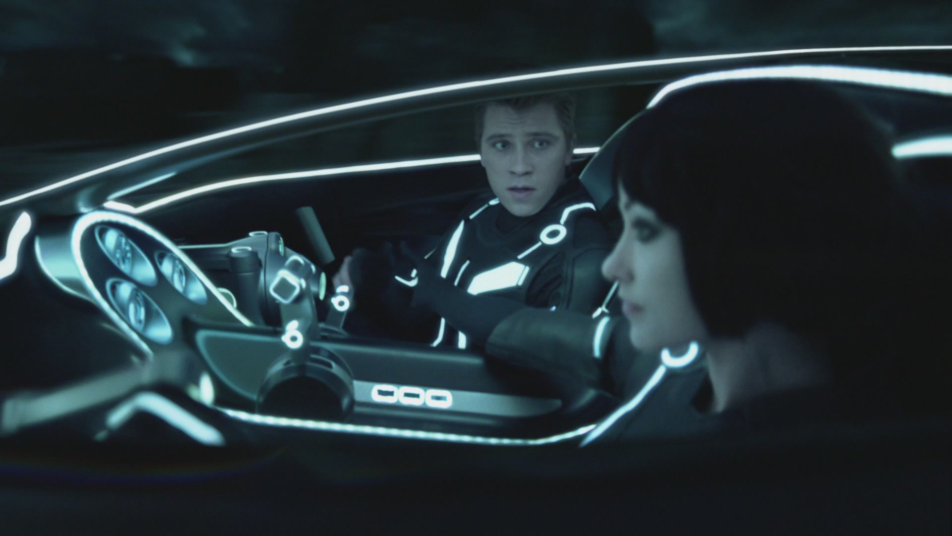 Sam wird dort von humanoiden Computerprogrammen gefangen genommen und mit einem Ganzkörperanzug sowie mit einem Identitätsdiskus ausgestattet. Anschließend wird er in eine Spielarena gebracht, wo er bei Gladiatorenspielen gegen den Champion, Rinzler, antreten muss. Während des Duells stellt sich heraus, dass Sam ein User ist, woraufhin Rinzler ihn zu Clu bringt. Dieses Programm ist ein digitales Ebenbild von Kevin Flynn, herrscht über den Raster und möchte den Glauben der Programme an User, d.h. Personen von außerhalb ihrer Welt, zerstören. Dies will er unter anderem in einem Kampf mit den Lichtrennern beweisen. Sam muss nun mit anderen, „usergläubigen“ Programmen gegen Clus Team antreten. Hierbei wird Sam fast getötet und im letzten Moment von Quorra gerettet, die Clus Lichtrenner zerstört, mit Sam in einem vierrädrigen Fahrzeug vom Raster entkommt und zu einem abgelegenen Versteck in den „Outlands“ fährt. Dort begegnet Sam seinem deutlich gealterten Vater.
