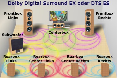 Wenn man es genau nimmt, ist dieses eigentlich eher ein Marketing Gag, weil die Rear Center Informationen sind ja ebenfalls in jeden normalen Dolby Digital 5.1 Track enthalten. Jegliche Tonanteile die zu gleichen Teilen (der Monoanteil) in beiden Rear Surround Kanälen vorhanden sind, entsprechnen dem neuen Rear Center Kanal, dieses wird aber in einer nicht Dolby Digital Surround EX fähigen Anlage auch von beiden Rear Surround Boxen ebenfalls wiedergegeben und auch als ein mittiges Signal empfunden. Der Vorteil der extra Rear Center Boxen (typischerweise 2 Boxen) ist das stabiliere Klangbild. Dieses ist auch der Grund dafür, das man bei Dolby Digital Surround EX fähigen Geräten bei manueller Zuschaltung des Rear Center Kanales dort immer etwas hört, weil ja immer Monoanteile vorhanden und zu hören sind. Sicher gibt es auch spezielle Dolby Digital Suround EX Abmischungen die den Rear Center Kanal mehr oder extra betonen. Zu vergleichen ist es mit dem Frontabbild. Einmal mit und ohne Center Lautsprecher, wobei dem Rear Center aber deutlich wenig Gewicht beizumessen ist.