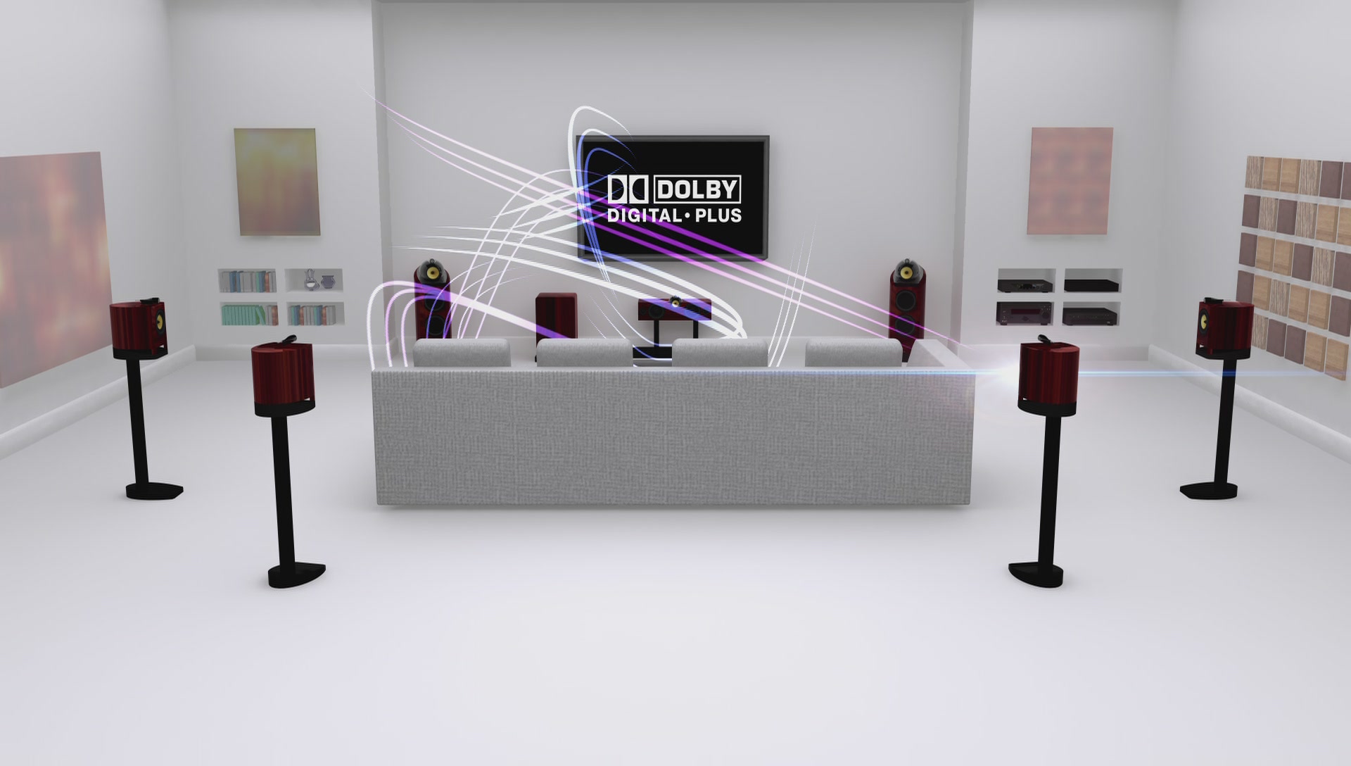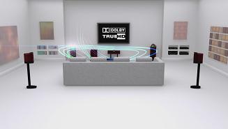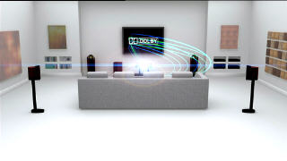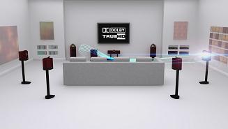 Der neue Dolby-Headphone Trailer. In einem Kino wird der Dolby-Digital City Trailer auf der Leinwand gezeigt und von mehreren Spots effektgeladen angestrahlt. Dann ein langsamer Schwenk auf die verzierte Kinodecke, von der dann das Dolby-Headphone Logo langsam dreidimensonal drehend in den Kinoraum einschwebt. Ein sehr gelungender Dolby-Trailer, der insbesondere optisch Akzente setzt. Ein neuer Dolby Digital Trailer der insbesonders den neuen Tonstandard im Köpfhörerbereich anspricht. Dabei ist Dolby Headphone ein Tonformat das spieziell für Kofhörer entwickelt wurde, so daß man auch dort räumlich 5.1 hören kann, und dies nur auf zwei Lautsprechern im Kopfhörer. Länge des Trailers: 19 Sekunden