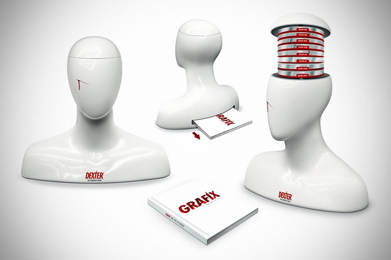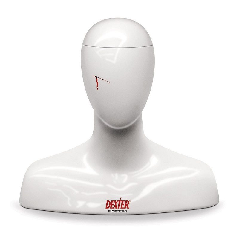 Alle acht Staffeln als limitierte Edition in einer Kunststoffbüste, die Dexter Morgans beliebtem Arbeitsutensil nachempfunden ist.
