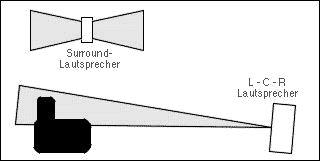 Ein möglichst diffuser Surroundton ist zu Hause genauso wichtig wie im Filmtheater. Dieses Ziel wird vor allem durch die spezielle Konstruktion der Surroundlautsprecher verwirklicht: Sie sind nämlich bipolar ausgelegt, d.h. jeder Lautsprecher (der rechte wie der linke) gibt den Ton jeweils in zwei Richtungen - sowohl nach vorn wie nach hinten ab. Die Lautsprecher werden so aufgestellt, dass der Zuschauer bzw. Zuhörer keinen auf ihn gerichteten Ton hört, sondern nur diffuse Reflexionen aus dem Raum.