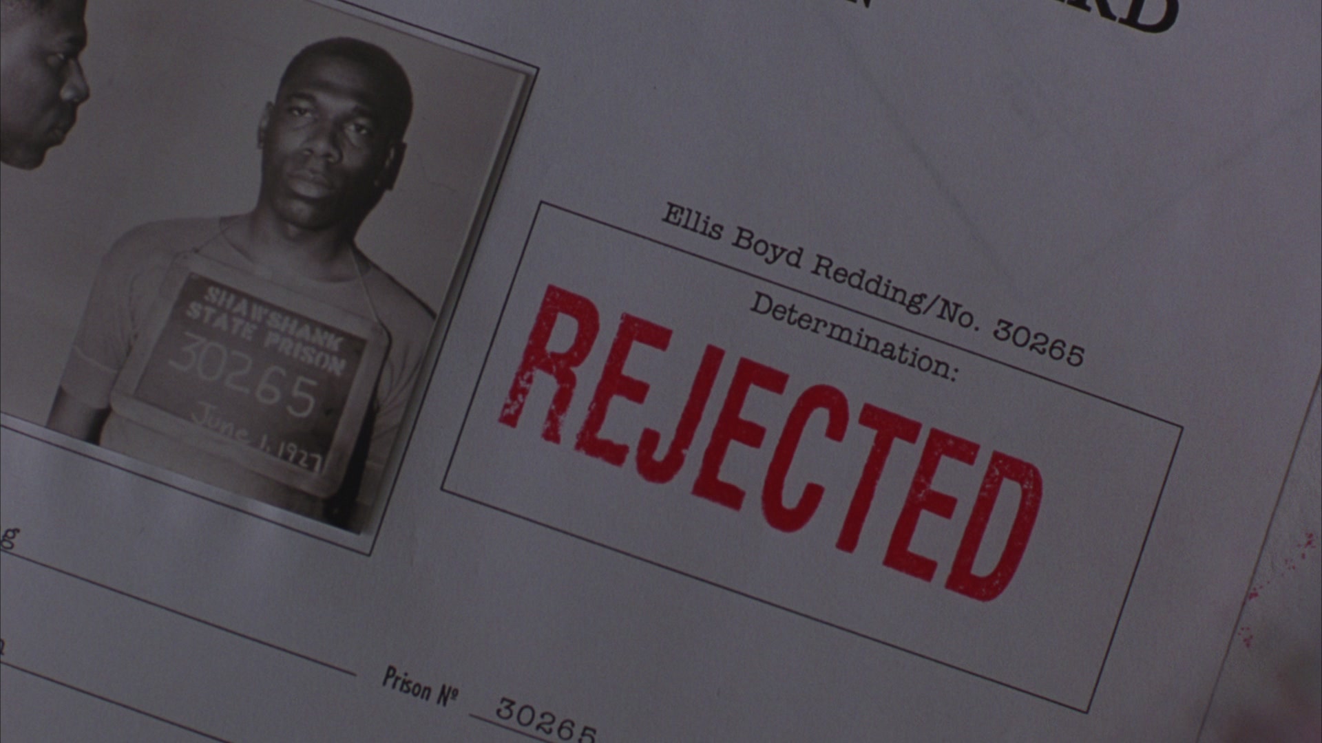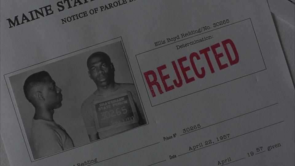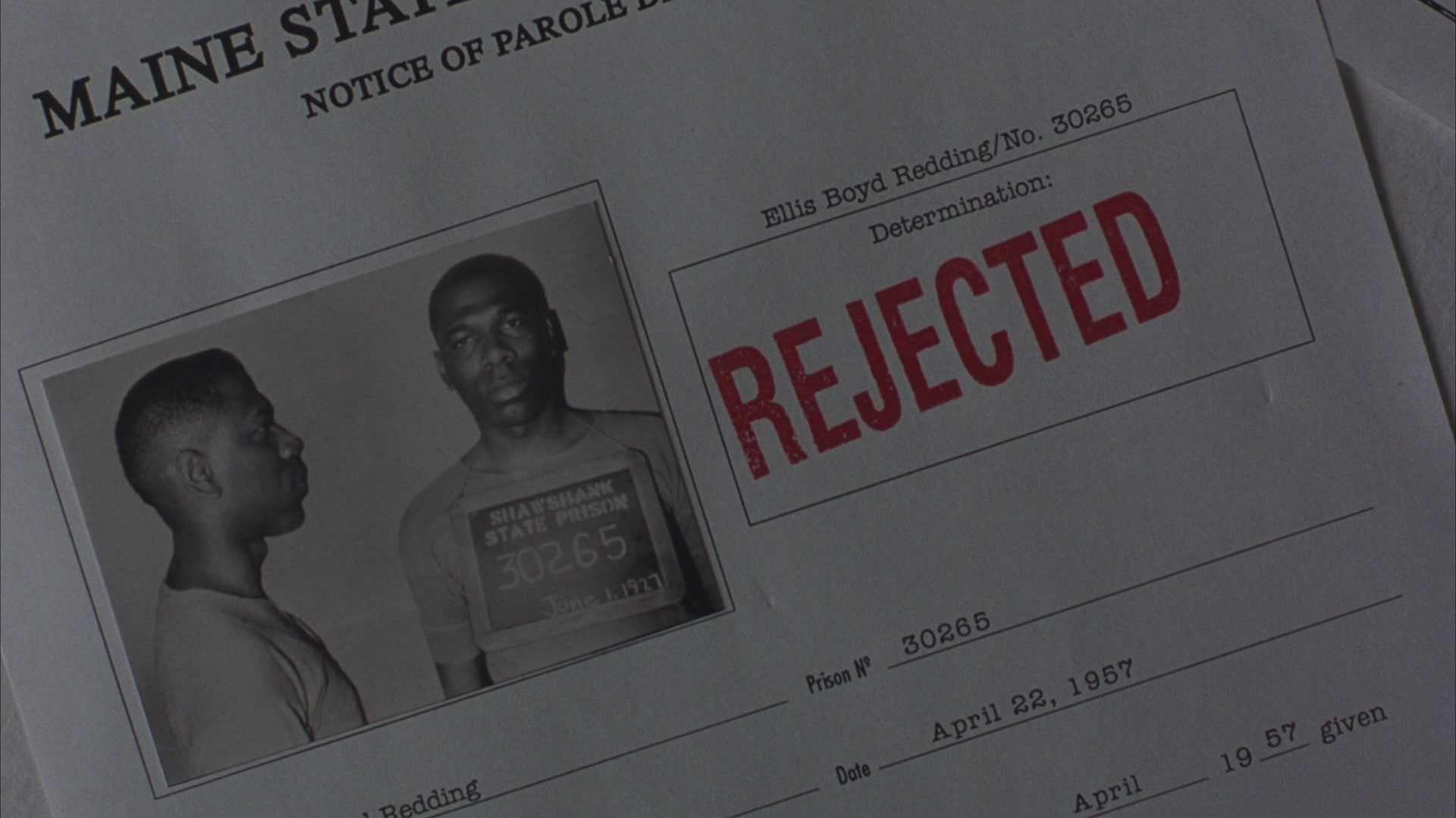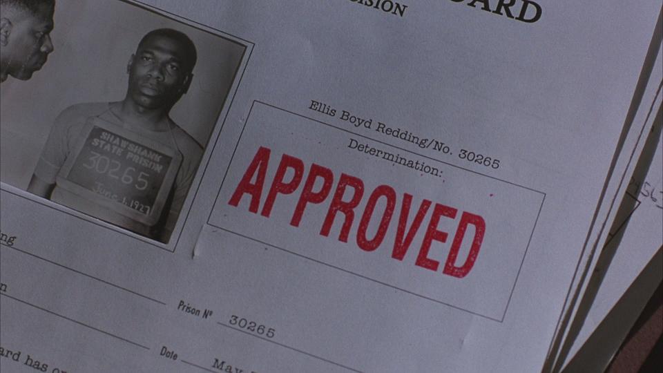 Red kommt kurze Zeit später auf Bewährung frei und erhält eine Stelle im selben Supermarkt wie Brooks. Er übernachtet auch in der gleichen Pension, in der sich Brooks umbrachte. Auch Red kommt am Anfang nicht mit der neu gewonnenen Freiheit und Einsamkeit zurecht. Er denkt darüber nach sich zu erschießen oder eine Straftat zu begehen, um so wieder ins Gefängnis zu kommen. Doch eines hält ihn immer noch am Leben: Das Versprechen, diesen bestimmten Baum in Buxton zu finden und dort nach einem schwarzen Stein zu suchen.