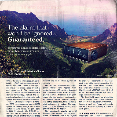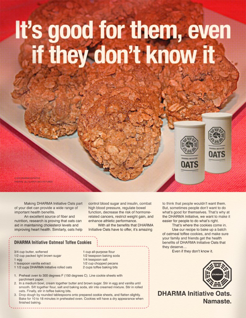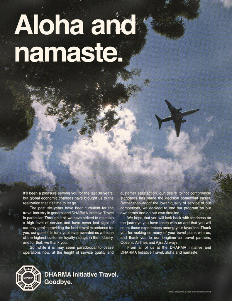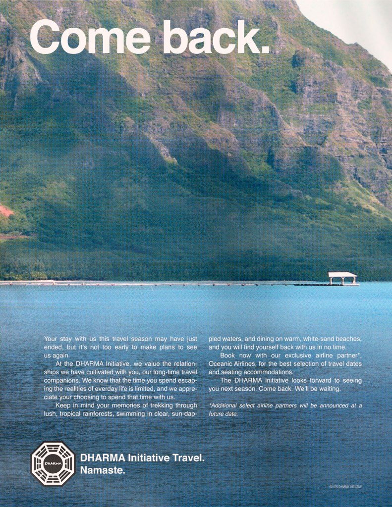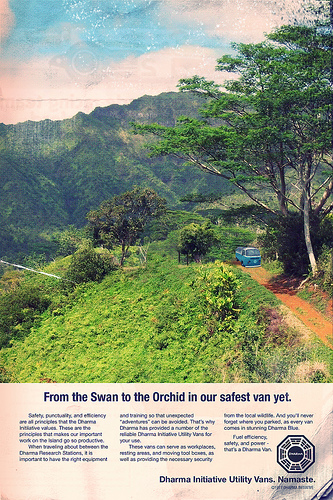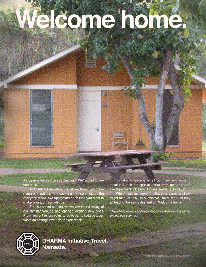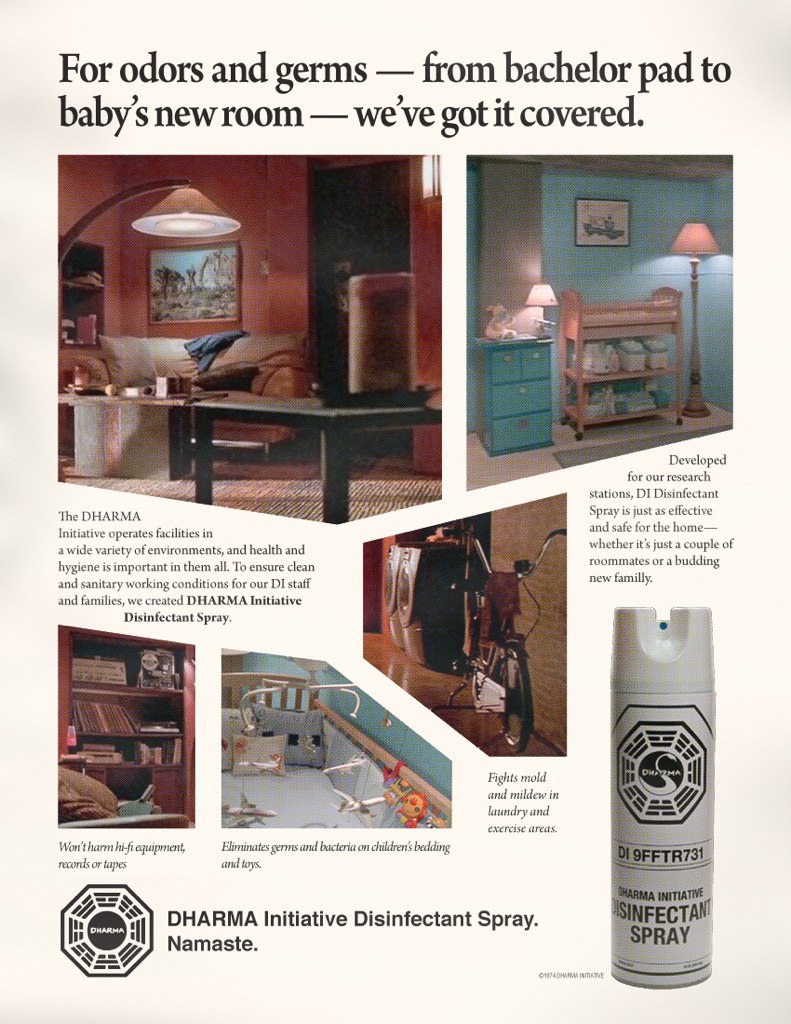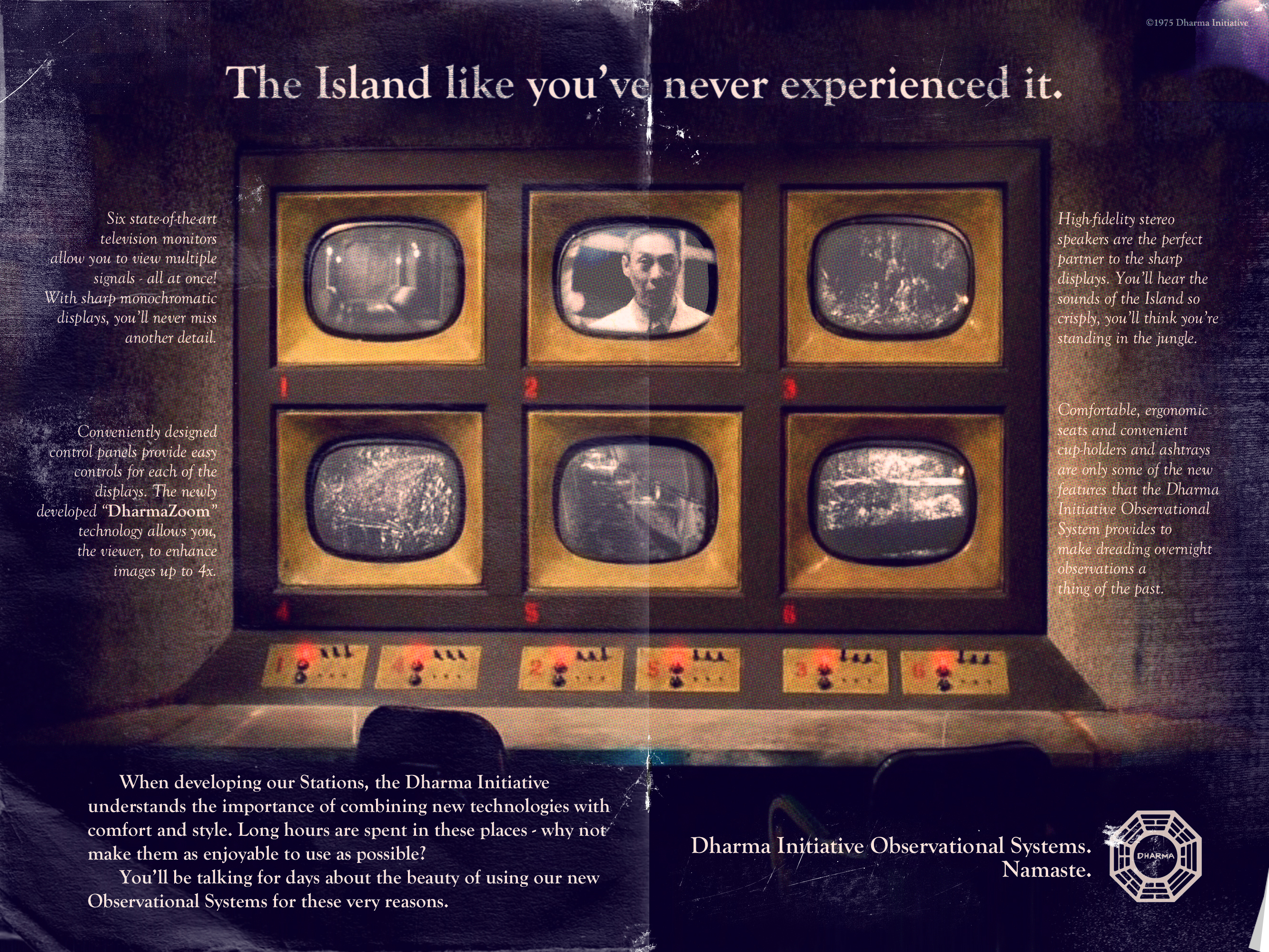 Die DHARMA Initiative (Department of Heuristics And Research on Material Applications Initiative) ist ein mysteriöses Forschungsprojekt, das in den 70er und 80er Jahren auf der Insel mehrere Stationen gebaut hat um Forschungen auf verschiedensten Gebieten vorzunehmen. Es wird von Variationen von einem oktogonalen Logo repräsentiert, das auf den meisten Produkten und Stationen der DHARMA Initiative abgebildet ist.