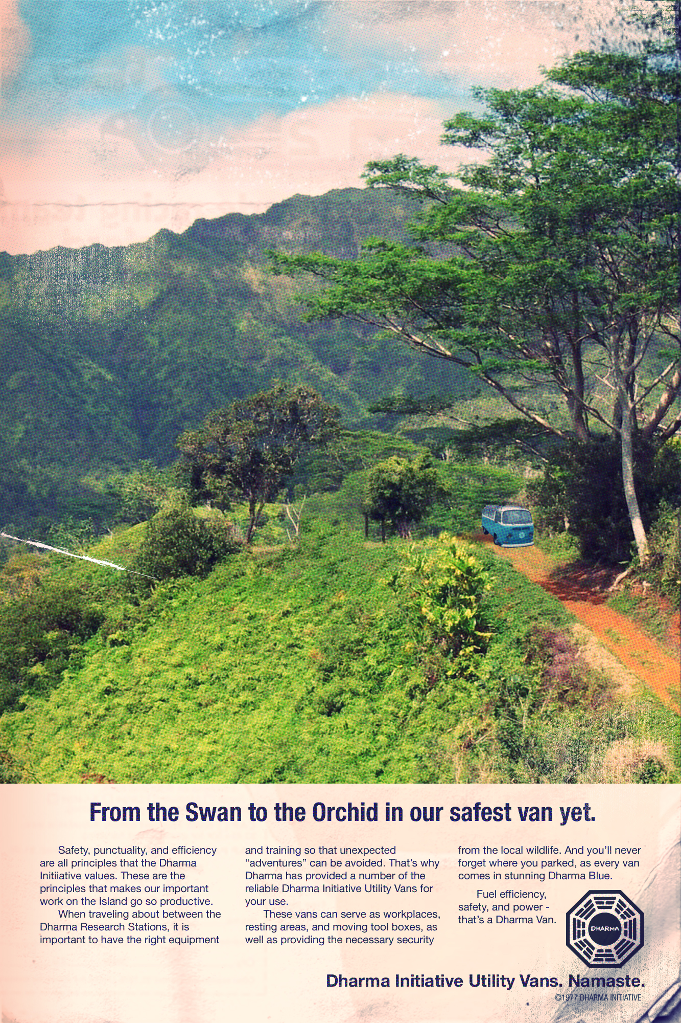 Gründung und Ziele: Laut Orientierungsfilm der Schwan-Station wurde die DHARMA Initiative 1970 von zwei Doktoranden der Universität von Michigan, Gerald und Karen DeGroot, gegründet. Sie wurde oder wird immer noch von dem dänischen Industriellen und Waffenmagnaten Alvar Hanso und seiner Hanso Foundation finanziell unterstützt. Im Orientierungsfilm wird auch erwähnt, dass die Initiative es sich zum Ziel gesetzt hat, einen "großangelegten Verbund von regionalen Forschungseinrichtungen, wo Wissenschaftler und Freidenker aus der ganzen Welt ihre Forschungen vorantreiben zu können", zu erschaffen. Die Forschung umfasst dabei die Gebiete Meteorologie, Psychologie, Parapsychologie, Zoologie, Elektromagnetismus und Utopische Sozialwissenschaften.