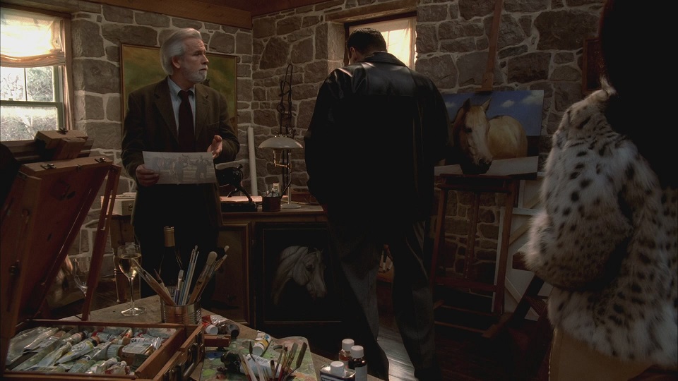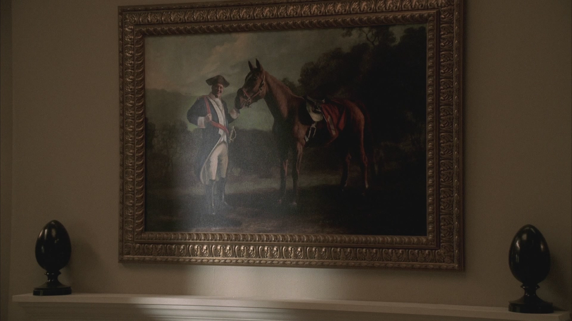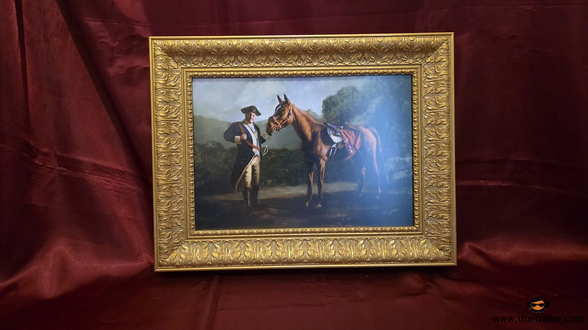 Das Bild habe ich von Etsy gekauft, dann ein Rahmen dazu gesucht der mir gefällt, es ist nicht 1:1, dafür hätte ich nicht den Platz! Der Rahmen hat eine Größe von einem DIA A3 Format, mit Rahmen hat es die Außmasse von 55cm x 43cm. Anthony hat das Gemälde extra malen lassen, um es aufzuhängen, durch den Tod des Pferdes, möchte er sich daran nicht mehr erinnern lassen und es soll zerstört werden. Kurz vor der Verbrennung wird es durch Pauli gerettet, er läßt es Anthony im Bild leicht verändern, in dem man irgendein General der Zeitgeschichte überpinselt, später in der Serie entdeckt das Bild Anthony Soprano bei Pauli zu Hause und ist nicht begeistert!