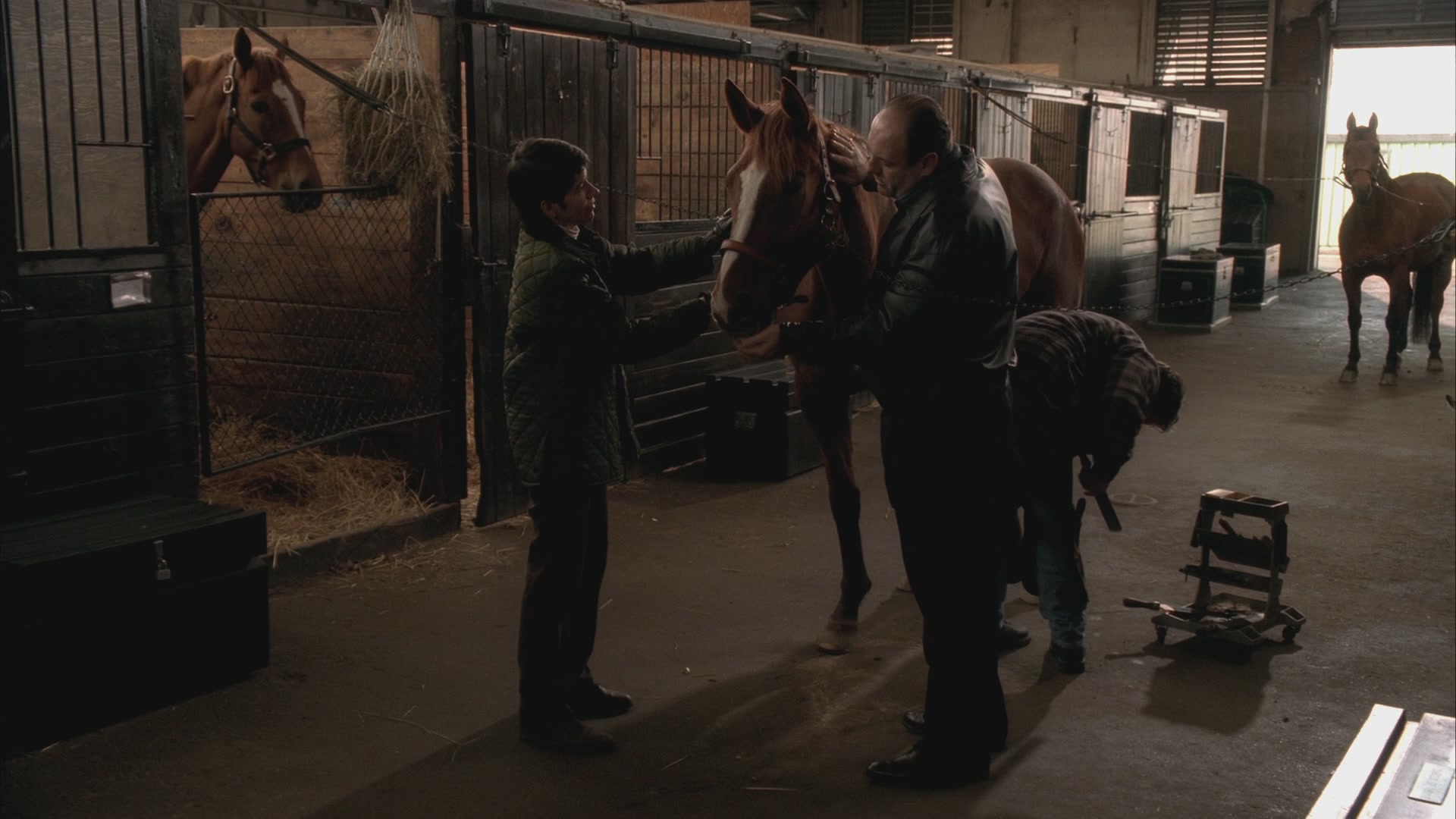 Da sich die Tierarztkosten für Pie-O-My häufen, verweigert der Tierarzt weitere Behandlungen, bis er bezahlt ist. Ralph jedoch weigert sich, einzugreifen, als das Pferd nachts krank wird, und gibt Tonys Nummer. Tony eilt zum Stall und begleicht die Rechnung. Tony sagt dem Tierarzt, er solle lieber hoffen, dass das Pferd „durchkommt“, bevor er in die Box geht, um sich zu dem Tier zu setzen, ihr tröstend den Hals zu streicheln und ihr zu versichern, dass alles gut wird.