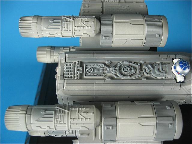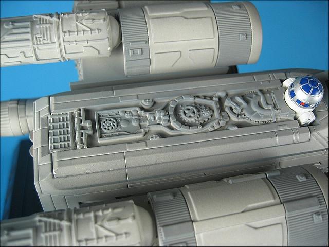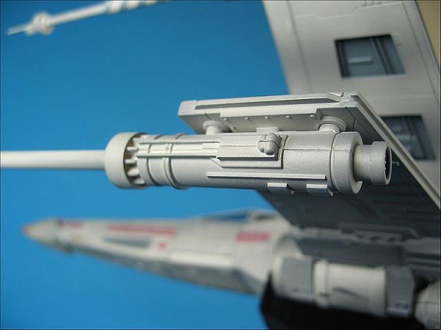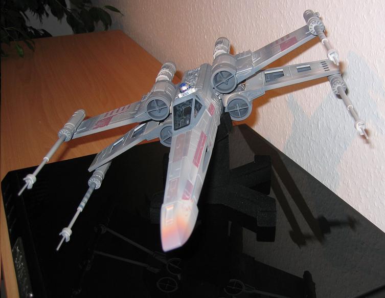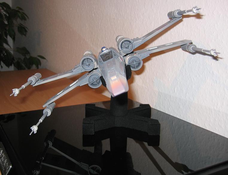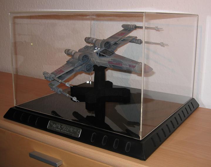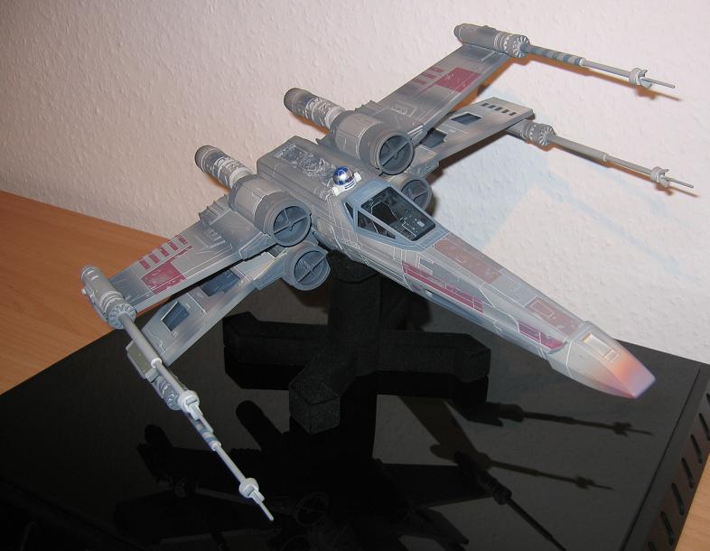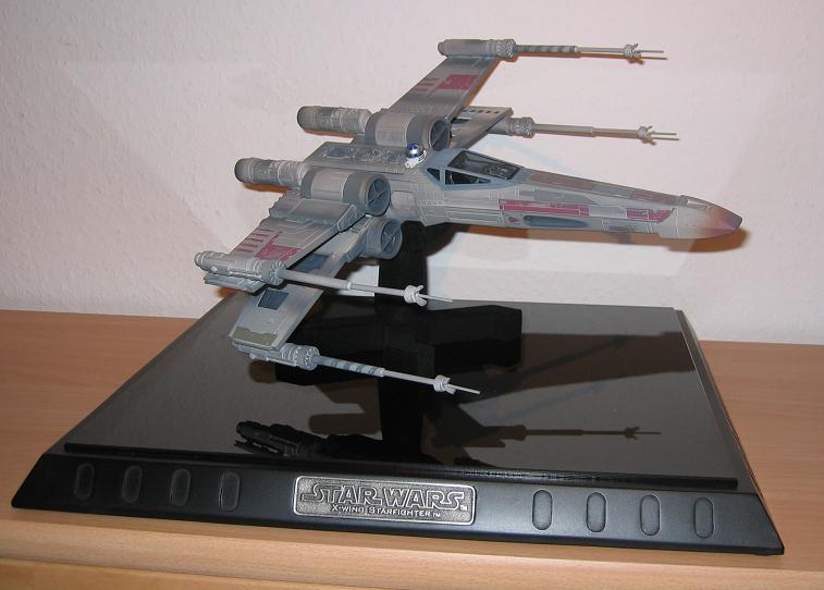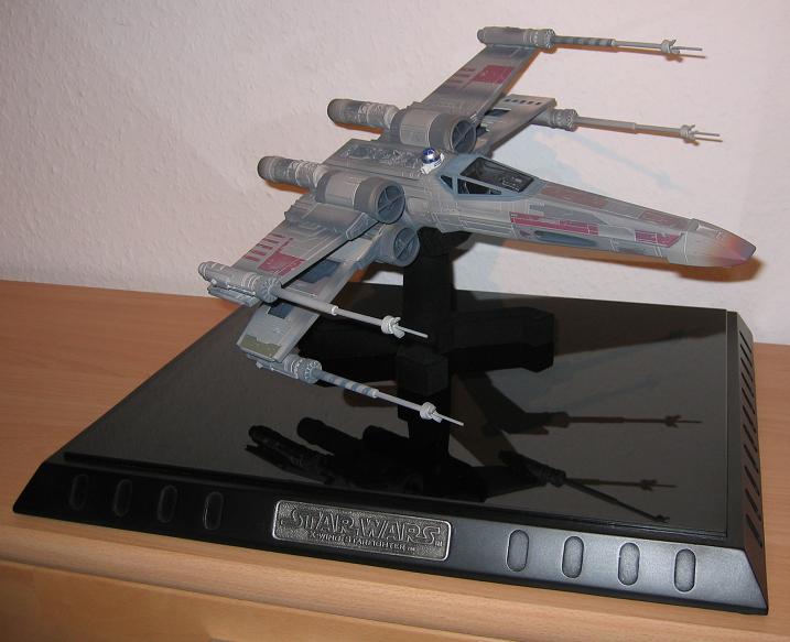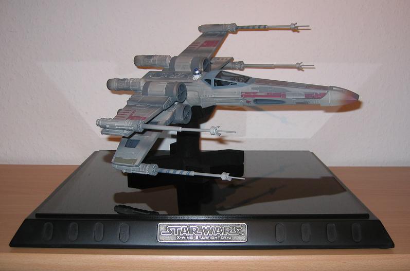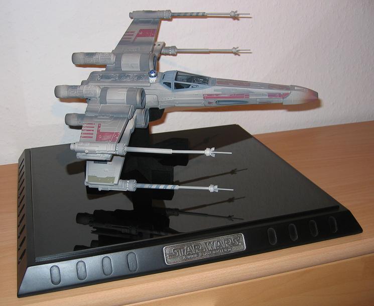 Der X-Wing kann in 2 Varianten dargestellt werden: Einmal mit ausgeklappten Flügeln, dem Attack Modus und ein anderes Mal mit zusammengelegten Flügeln für den Normalflug.Die Flügelspannweite beträgt 27 cm und das Modell ist im Maßstab 1:38 gehalten. Der X-Wing wurde den Modellen nachgebaut, die für das Filmen von Episode IV: Eine neue Hoffnung benutzt wurden.