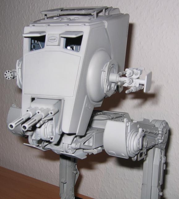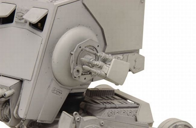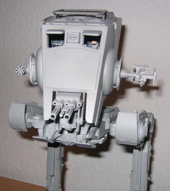 Ein AT-ST ist vorne unten am Kopfteil mit einem schweren Doppelgeschütz ausgerüstet. Für zusätzliche Feuerkraft sorgt ein Granatwerfer auf der rechten und ein leichtes Geschütz auf der linken Kopfseite.
